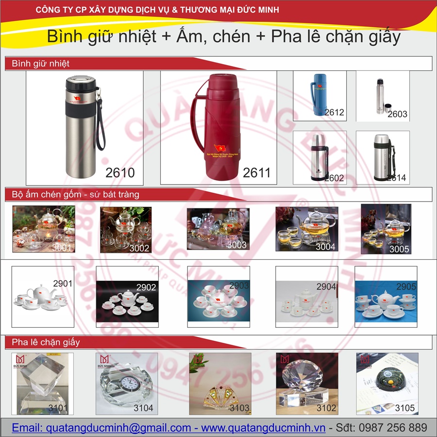 Giải Pháp Quà Tặng Đại Hội Bình Giữ Nhiệt-Ấm Chén Bát Tràng-Pha Lê Chặn Giấy